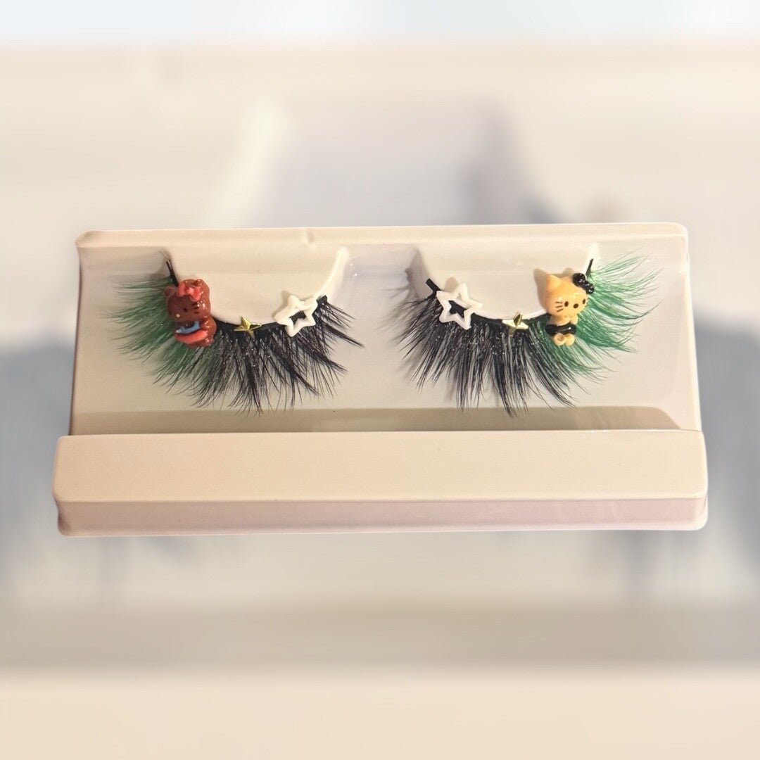 Discover the playful elegance of our Hello Kitty Lashes, designed for those who want to add a touch of whimsy to their beauty routine. These lashes feature a stunning mix of black and green undertones, crafted from high-quality mink for a luxurious feel. The unique color palette not only enhances your eyes but also gives a vibrant pop that can elevate any makeup look. Whether you’re going for a bold night out or a subtle everyday wear, these lashes are versatile enough to complement any style. Lightweight and easy to apply, the Hello Kitty Lashes promise comfort without sacrificing drama. Experience the perfect blend of fun and sophistication with these exquisite lashes that encapsulate the spirit of Hello Kitty. Unleash your inner cuteness while embracing a chic vibe with every flutter.